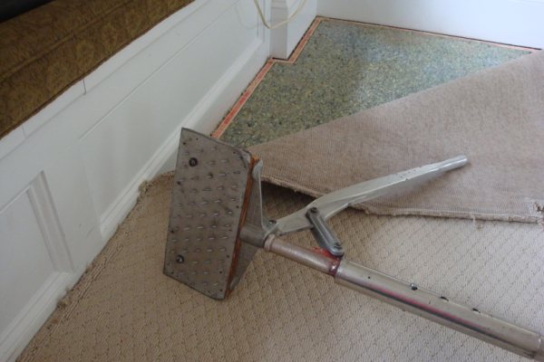 This is a power stretcher, which is the correct tool for installing carpet. Many times, carpet is not originally installed using this tool, which leads to problems. |